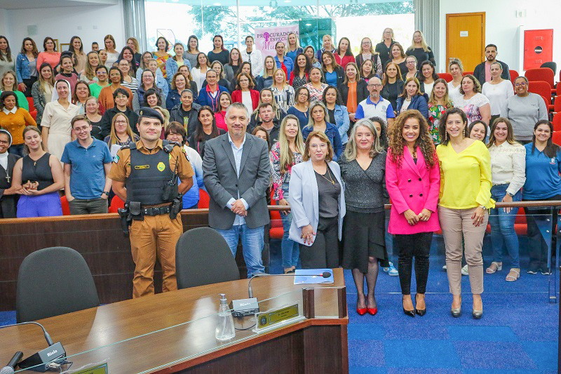 Na manhã de terça-feira (09/05), foi realizada pela Procuradoria Especial da Mulher da Câmara Municipal, em parceria com a Secretaria Municipal de Educação, formação continuada para profissionais da Educação sobre violência contra a mulher e violência nas escolas. Os encontros com as diretorias da rede pública de ensino são promovidos mensalmente pela Secretaria de Educação, como cumprimento da carga horária e alinhamento de ações. O evento contou com a palestra da Dra. Mariana Bazzo, promotora de justiça de Curitiba, sobre crimes contra mulheres e com a palestra do Primeiro-Tenente Bianchi, comandante do Batalhão de Patrulha Escolar Comunitária, sobre violência nas escolas. Tiveram também importantes presenças, como a da Excelentíssima Juíza Dra. Dilmari Kessler, representando a CEVID - Coordenadoria Estadual de Violência Doméstica do TJPR; do Prefeito Maurício Rivabem e do Presidente da Câmara Municipal, vereador João D’Água. Também, durante o evento, o Prefeito sancionou projeto de lei de autoria da vereadora Cléa Oliveira, para disponibilização de formulário de violência doméstica no ato da matrícula escolar em todas as instituições de ensino do município. A vereadora e Procuradora da Mulher agradeceu a presença de todos nesse evento de grande relevância para a educação de Campo Largo.