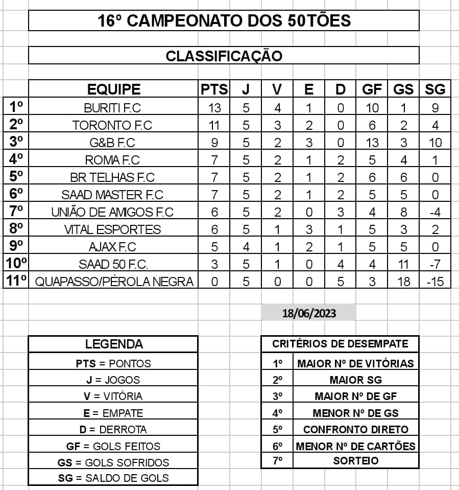 O Buriti está na liderança do 16º Campeonato 10 dos 50tões –