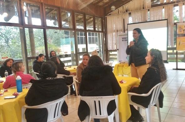 A Secretaria Municipal de Educação, em parceria com os representante Ana Paula Pannebecker e Giovani Seguro do Sicredi, realizou formação para os pedagogos que teve como tema central "As Responsabilidades e os Papéis das Pedagogas e Pedagogos nas Instituições de Ensino". O evento reuniu os profissionais da área da educação, em busca de aprimoramento e reflexão sobre o trabalho exercido nas instituições de ensino. O encontro proporcionou um ambiente propício para a troca de conhecimentos e experiências entre os participantes. Ao longo do encontro, os pedagogos(as) foram incentivados a compartilhar suas experiências, desafios e sucessos, criando um ambiente de aprendizado mútuo. Essa troca enriquecedora fortaleceu a rede de profissionais comprometidos com a educação, reforçando a importância da colaboração e do constante desenvolvimento profissional.