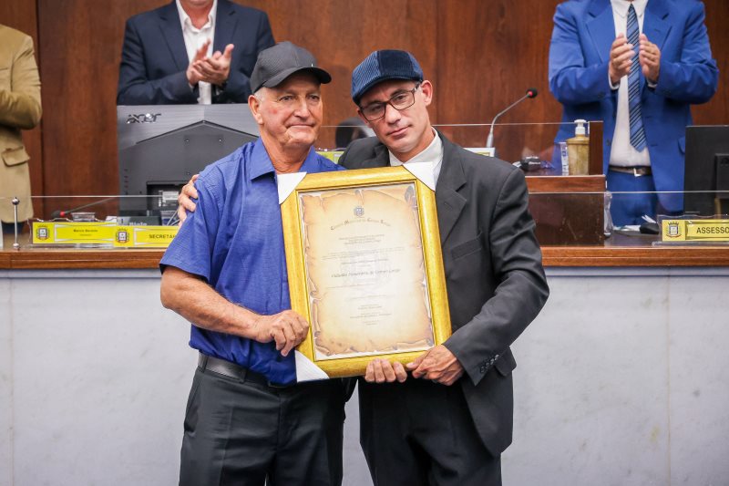 O operador de máquinas da Secretaria Municipal de Obras Públicas de Campo Largo, Olívio Tomaz Miranda, recebeu o título de Cidadão Honorário, a pedido do vereador Germaninho.