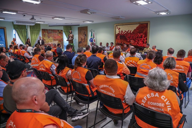 Com o propósito de fortalecer a capacidade de resposta e gestão de riscos dos municípios em situações de desastres, o prefeito de Curitiba, em exercício, Eduardo Pimentel sancionou, na quinta-feira (09/11), a lei municipal que estabelece o Conselho de Integração de Proteção e Defesa Civil da Região Metropolitana de Curitiba (CPDCM). A cerimônia de assinatura ocorreu no Salão Brasil, na sede da Prefeitura de Curitiba, com a presença de autoridades da Região Metropolitana de Curitiba (RMC), vereadores de Curitiba, administradores regionais e representantes das Defesas Civis locais.