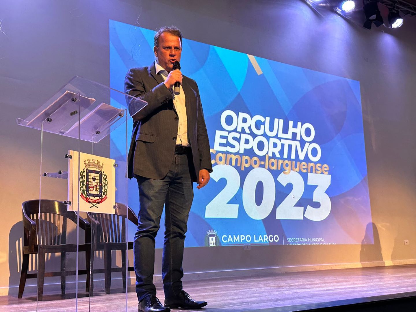 Foi realizada no dia 23 de novembro a cerimônia de entrega do Prêmio Orgulho Esportivo Campo-Larguense 2023. O evento, promovido pela Prefeitura de Campo Largo, por meio da Secretaria Municipal de Esporte, Lazer e Cultura, aconteceu na Casa da Cultura Dr. José Antônio Puppi, com a presença de familiares e autoridades, e homenageou atletas, esportistas e professores de educação física que fizeram e que ainda fazem história no esporte.