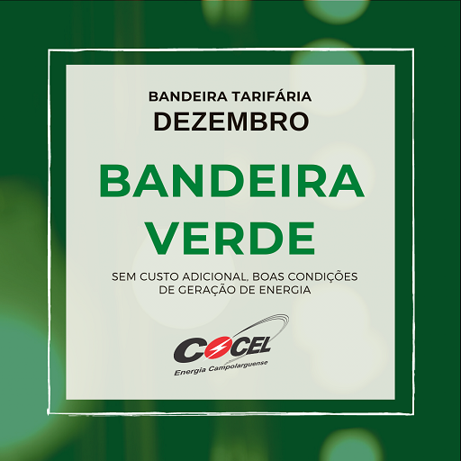 A Agência Nacional de Energia Elétrica – ANEEL mantém o acionamento da bandeira tarifária verde no mês de dezembro de 2023. Não há cobrança adicional nas tarifas de energia, devido às boas condições de geração. A bandeira verde está vigente desde 16/04/22 – é o maior período de acionamento consecutivo de uma mesma bandeira.