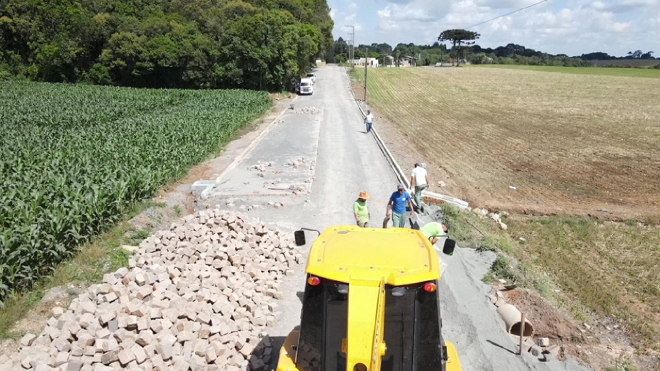 Estrada rural de Campo Largo recebe pavimentação em pedra