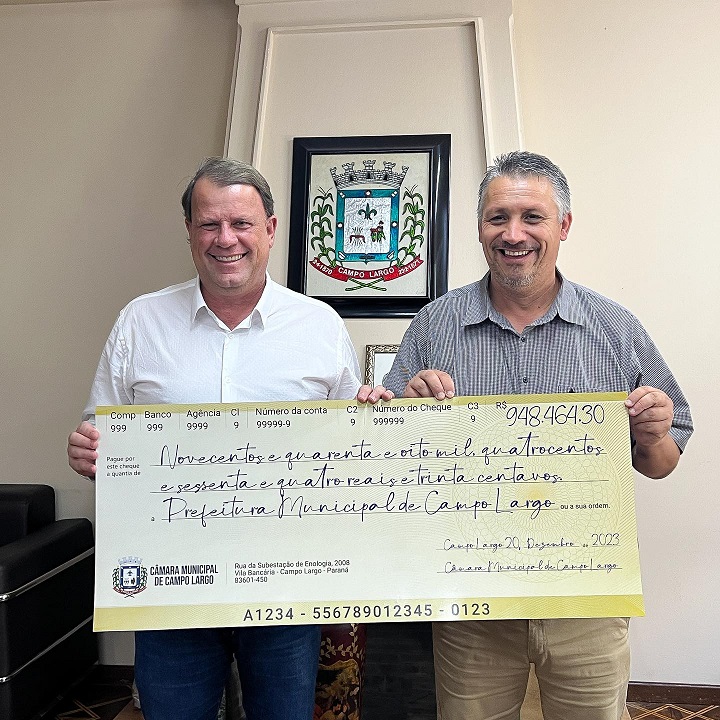 Na quarta-feira (20/12), a Câmara Municipal de Campo Largo realizou a devolução de R$ 948.464,30 (novecentos e quarenta e oito mil quatrocentos e sessenta e quatro reais e trinta centavos) para a Prefeitura do município.