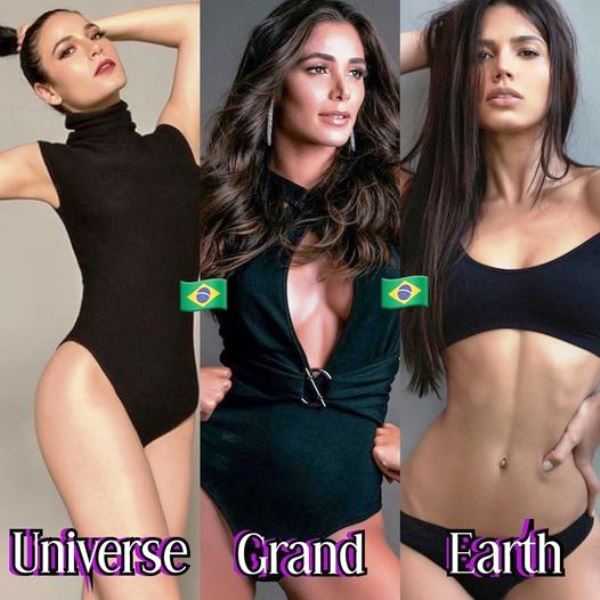 Começamos pelo mais importante, que é o Miss Universo, com a participação de Julia Gama, que é a Miss Brasil Universo; depois temos a Miss Brasil Gran 2020, Lala Guedes, que irá representar o Brasil no Miss Gran Internacional e a bela Thaís Bergamini, que é a Miss Brasil Earth 2020, e participará do Miss Earth. Essas são as donas da beleza no Brasil 2020, façam suas escolhas, em qual é a sua favorita em trazer um título para nosso país!
