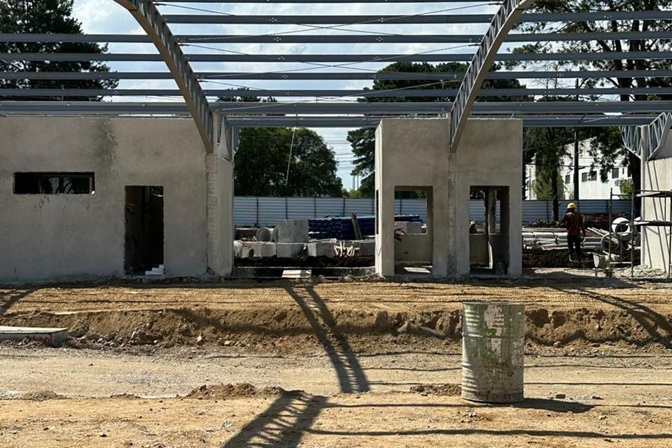 Nos próximos dias, a empresa encarregada das obras iniciará a próxima fase, abrangendo a implementação das instalações hidráulicas e elétricas, aplicação de revestimentos cerâmicos, bem como a execução da caixa de contenção de cheias.