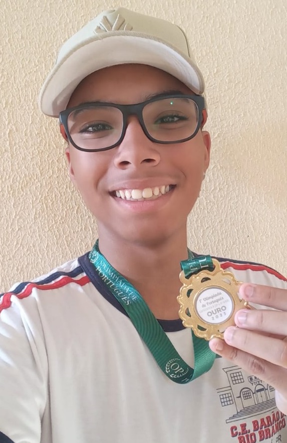 As questões da prova são exclusivamente de múltipla escolha e estimulam a capacidade expressiva, interpretativa e o raciocínio linguístico dos alunos, por isso são tão interessantes. Esse cuidado foi percebido pelo estudante Maiky F. Pereira da Silva, 14 anos, do Colégio Estadual Barão do Rio Branco, em Assaí (PR). “As perguntas não estavam fáceis, mas alguns textos nos deixavam mais leves, por causa do seu humor”, avalia. Maiky também foi medalhista da OP 2023 e diz que por algum tempo seu interesse esteve apenas com a matemática — até ter contato com uma professora que o despertou para o português e o fez se encantar pela poesia e pelo alcance da interpretação e da criação poética.