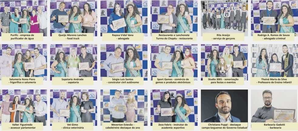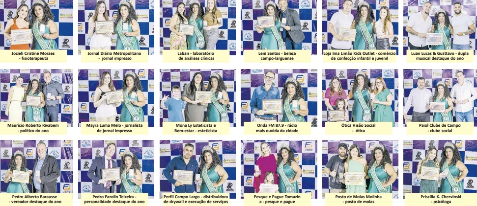 Ao todo, 85 pessoas receberam a premiação dentro das áreas comercial, empresarial, individual e educacional. Além da entrega da premiação, que ocorreu a partir das mãos da Miss Campo Largo e Paraná Sênior, top model Leni Santos, o evento contou com um delicioso jantar. A animação ficou por conta da dupla sertaneja Luan Lucas & Gusttavo.