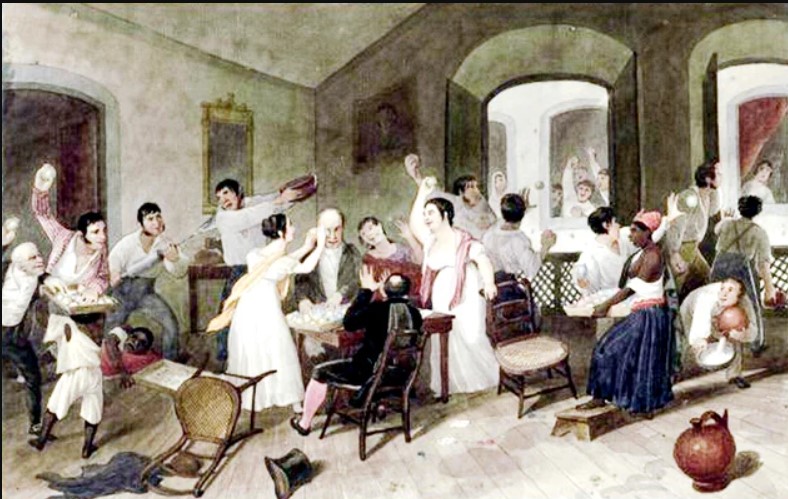 Foto: Jogos do entrudo. Aquarela de Augustus Earle (1822)