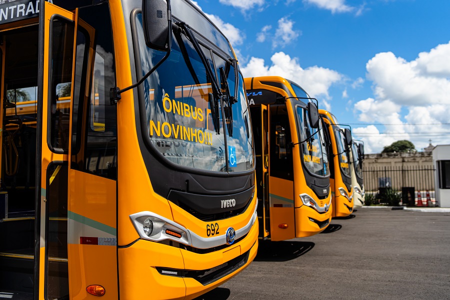 em Campo Largo entregando novos ônibus para o município