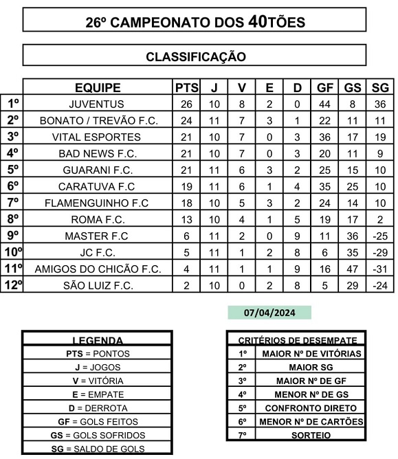 Campeonatos do Joacir, 50tões e 40tões, em Campo Largo com jogos no sábado (20/04) e no domingo (21/04)