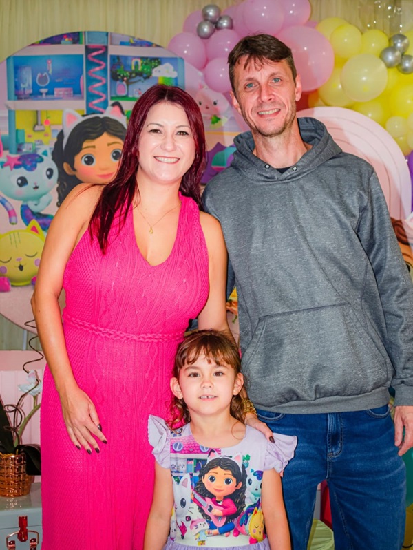 Laura com os pais Dilmara e Tiago