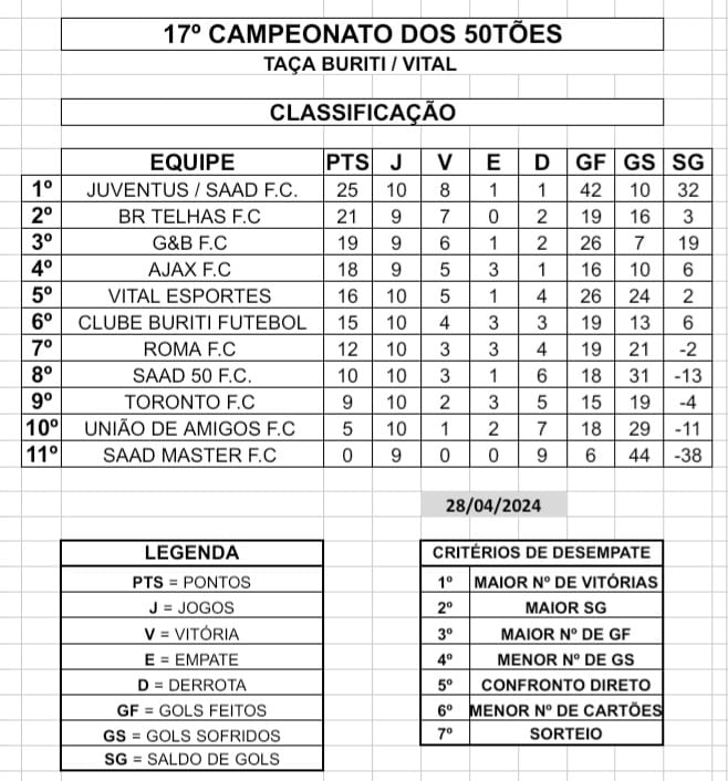 Taça Buriti/Vital – 17º Campeonato 10 dos 50tões – 1ª Fase