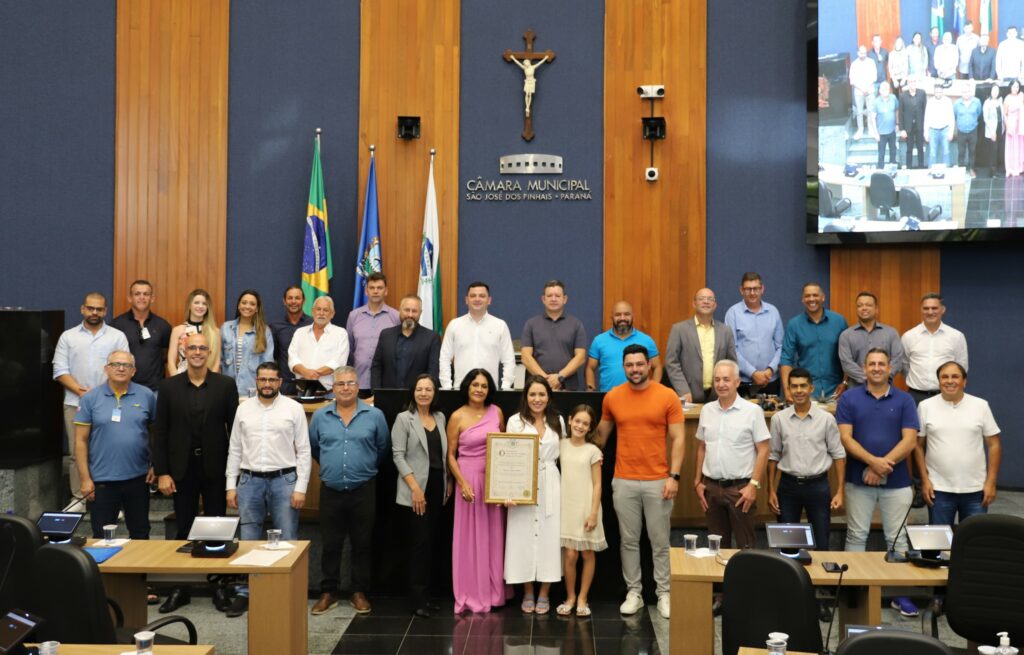 Também foi homenageada na Sessão a dentista Maressa Souza Piccoli, que recebeu o título de Cidadã Honorária de São José dos Pinhais. Nascida em Pérola, interior do Paraná, ela veio para Curitiba com 12 anos de idade. Concluiu a sua graduação em Odontologia em 2016 e, em seguida, instalou-se com sua clínica odontológica no bairro Guatupê, em São José dos Pinhais. Hoje, a sua Mappi Odontologia é uma franquia que atua em estados como São Paulo e Santa Catarina.