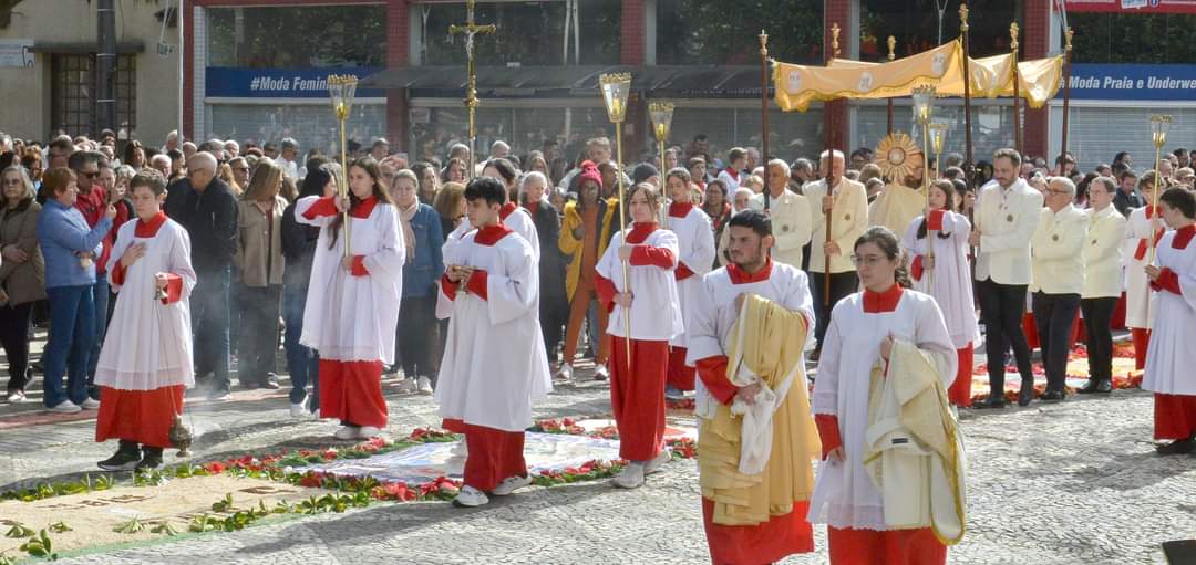 Corpus Christi é a celebração do Corpo e Sangue de Jesus Cristo. “Uma festa católica que busca celebrar o mistério da Eucaristia. Essa festa foi instituída pelo Papa Urbano IV no dia 08 de setembro de 1264. Durante a Festa de Corpus Christi, as ruas são enfeitadas e ornamentadas para que por elas se passe a procissão com o Santíssimo Sacramento. Essa procissão lembra a caminhada do povo de Deus, peregrino em busca da Terra prometida. Antes, o povo peregrino que caminhava no deserto era alimentado com o Maná. Hoje, graças à instituição da Eucaristia, o povo é alimentado pelo próprio Corpo e Sangue de Jesus Cristo”, publicou a Paróquia, em nota.