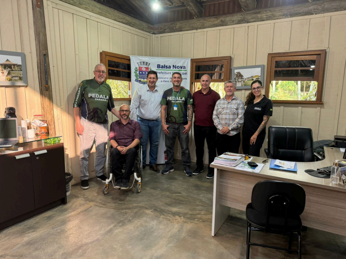 Na sexta-feira (21 de junho), em Balsa Nova, na Secretaria Municipal de Agricultura e Meio Ambiente (SMAMA), estiveram reunidos representantes da Secretaria de Esporte do Estado do Paraná e das Secretarias Municipais de Agricultura e Meio Ambiente, Indústria, Comércio e Turismo, e Educação, Cultura e Esporte. O objetivo foi discutir a adesão do Município ao programa Pedala Paraná e a inserção de sua ciclorrota.