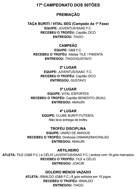 Taça Buriti/Vital – 17º Campeonato 10 dos 50tões