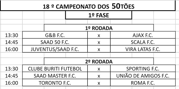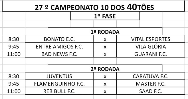 A cada edição os campeonatos promovidos pelo Joacir Garrett da Silveira atraem mais desportistas e praticantes do futebol raiz, nas categorias dos 40 anos e dos 50 anos. O sucesso alcançado estimula a realização de novas edições, estimuladas pela boa organização e disciplina das equipes. Assim, as disputas do 18º Campeonato 50tões tem início no dia 06/07 (sábado) e o 27º Campeonato 40tões tem início no dia 07/07 (domingo).