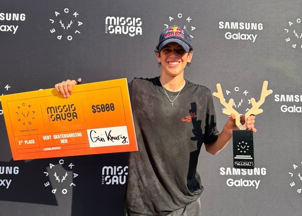 No final de semana, o skatista Gui Khury, de apenas 15 anos, venceu a modalidade vertical do Jackalope Festival, o maior evento de esportes radicais do Canadá, realizado em Mississauga. Em uma sequência impressionante, esse é o terceiro campeonato da categoria em que Gui se destaca, já que venceu recentemente o Tony Hawk 's Vert Alert e a medalha de ouro no Best Trick dos X-Games de Ventura, neste mês.