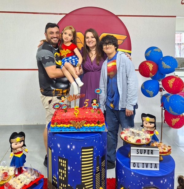 Para comemorar seus 5 anos, Olívia escolheu como tema da festa “Mulher Maravilha”. O evento aconteceu no Clube dos Bodegueiros, com muita diversão. Os pais da aniversariante são Carolina Marchiori e Ângelo Gonçalves Dias. Parabéns, Olívia! Confira as fotos.