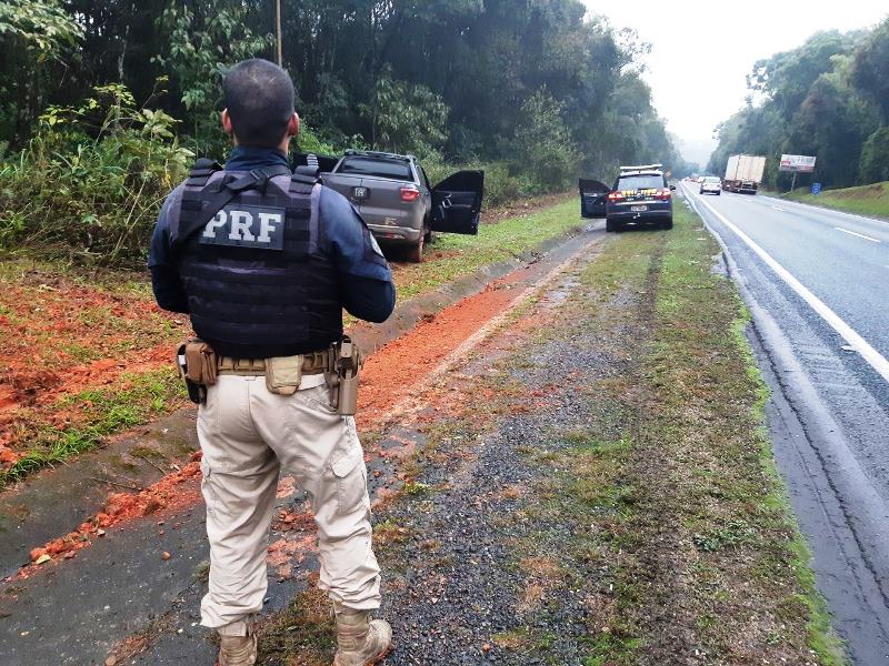 Segundo a PRF, os agentes realizavam ronda pela BR-277, quando visualizaram um veículo Fiat/Toro transitando com o farol apagado, mesmo com forte neblina presente na região. Visando a segurança do condutor e dos demais usuários da rodovia, com a finalidade de evitar acidentes, a equipe acompanhou visualmente o veículo, até um local seguro, para que fosse realizada uma abordagem preventiva.