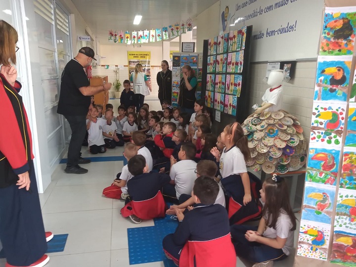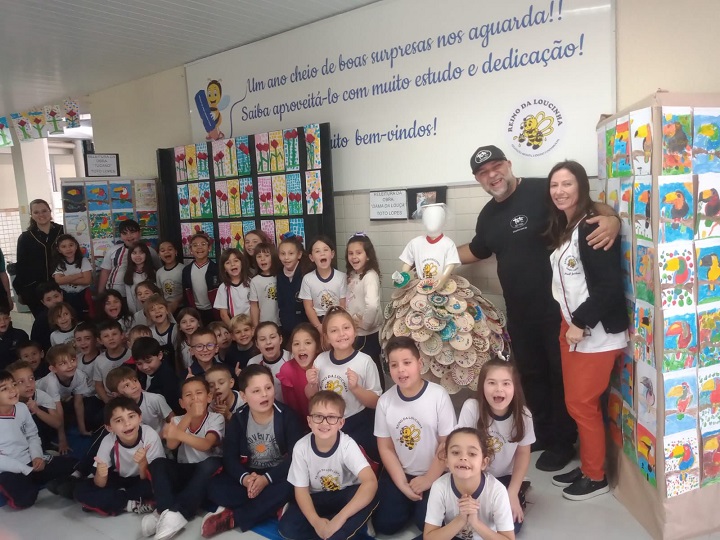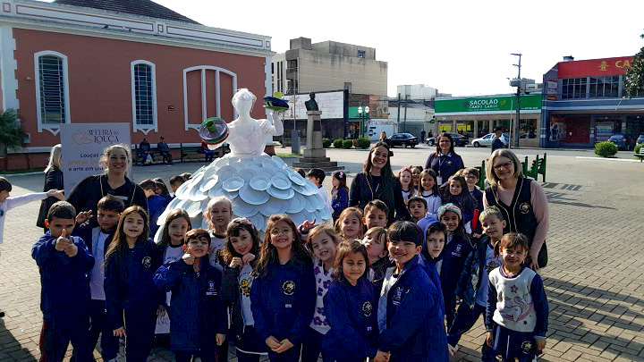 A pedagoga Jucilene Cunico e professora de Arte Franciele Leite contam que o currículo proposto pela disciplina traz a necessidade de trabalhar um artista de Artes Plásticas. “Na mesma época que estávamos trabalhando sobre ele com os alunos, quando eu estava nas redes sociais, vi que ele havia feito a Dama da Louça para a Feira da Louça e sugeri que trabalhássemos com ela. Inclusive eles foram na Praça Getúlio Vargas para visitá-la e ficaram muito empolgados com a proposta”, conta a pedagoga Jucilene.