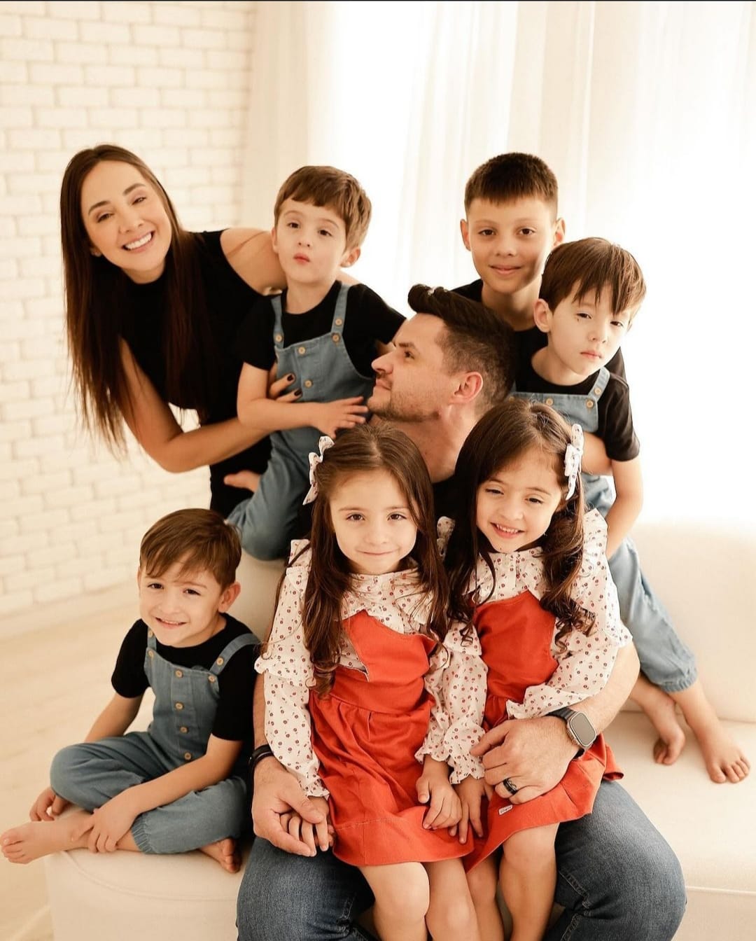 “Com a descoberta da minha gestação de cinco bebês, foi algo mágico, instantaneamente senti algo dentro de mim que tomou conta totalmente e, ao mesmo tempo foi assustador e repleto de incertezas, a única certeza é que não faltaria amor (...). Eu e o Luis lutamos muito por eles, sou uma pessoa que tento sempre passar positividade e leveza. Vivemos muitas dificuldades em Campo Largo, foi desafiador demais, o período da UTI foi muito difícil também, mas passaríamos tudo novamente (...). Sou muito grata e escolhida por Deus para esta linda missão”, publicou a mãe Anieli na página “Quíntuplos do Paraná”, na rede social Instagram. Fotos: reprodução/Instagram.
