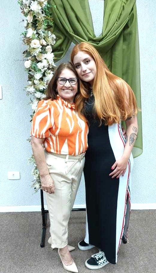 A filha Marcella com a mãe.