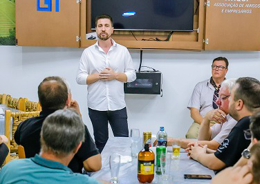 Como candidato a vereador pelo União Brasil, o associado da Itaqui Associação de Amigos e Empresários, Gustavo Strapasson, falou sobre a sua vida empresarial e pública. Indicou na proposta o apoio às causas do setor produtivo. Em 2022, foi candidato a deputado federal. Pedindo voto, indicou o seu número.
