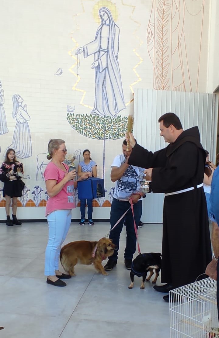 O Frei Mário José Knapik realizou a bênção aos animais na Capela Nossa Senhora de Fátima, no sábado (05 de outubro), em homenagem ao co-padroeiro da comunidade, São Francisco de Assis. Vários tutores compareceram com seus bichinhos de estimação na sede da igreja, localizada na Vila Elizabeth, em Campo Largo.