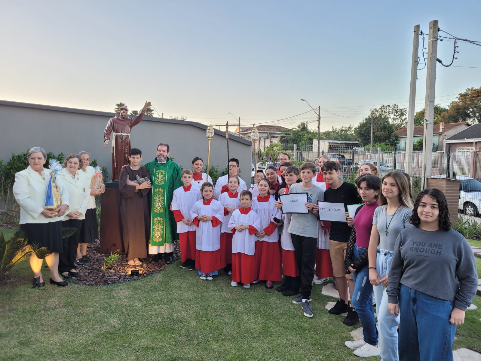 Após a bênção, às 17h, aconteceu na capela a missa festiva em louvor ao santo, presidida pelo Pároco da Paróquia Nossa Senhora da Piedade, Pe. Valdirlei Augusto Chiquito. Às 19h, ocorreu um festival de prêmios no salão social da comunidade. “A Capela Nossa Senhora de Fátima agradece a todos que de alguma forma contribuíram para que esse evento tenha acontecido. Que São Francisco de Assis vos abençoe”.