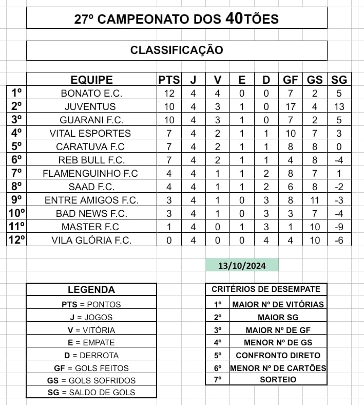 o dia 19/10 e 40tões – 9ª rodada acontece no dia 20/10 (domingo)