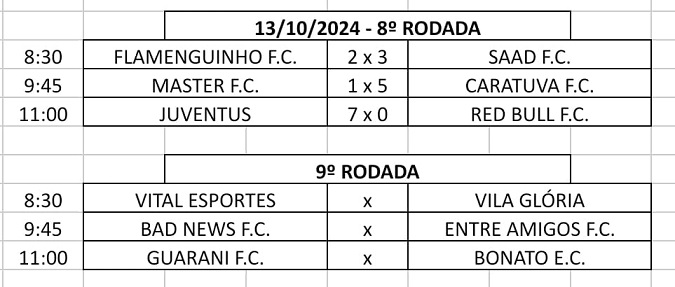 Os três jogos pelo campeonato Futebol Raiz - 50tões, da 10ª rodada, foram transferidos do dia 12/10 para o dia 19/10 (sábado), à tarde. A 9ª rodada do 40tões, com três jogos, está prevista para o dia 20/10 (domingo), pela manhã. Os campeonatos Futebol Raiz, 50tões e 40 tões, são promovidos e coordenados por Joacir Garrett da Silveira e acontecem nos finais de semana.