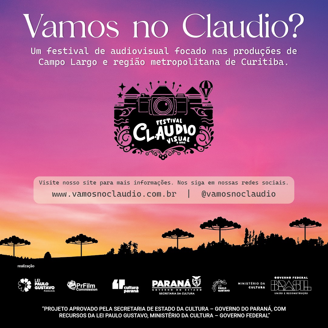 O Festival de Audiovisual de Campo Largo e Região Metropolitana de Curitiba (CLAudio) é realizado através de recursos do Governo Federal repassados por meio da Lei Paulo Gustavo, e tem o objetivo de valorizar produções audiovisuais locais, exibindo curtas, média e longa-metragens produzidas na região. Para conferir mais detalhes do evento, acesse o site www.vamosnoclaudio.com.br.