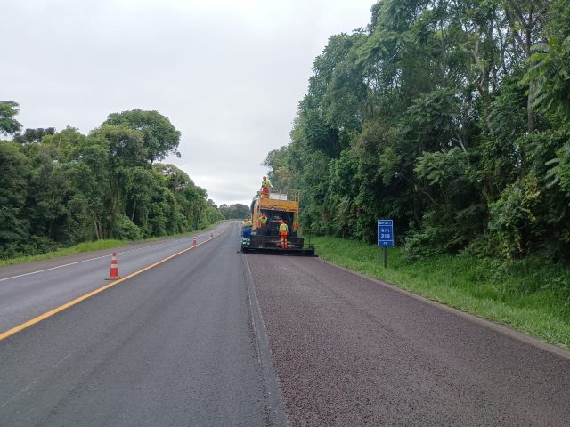 Intervenções de microrrevestimento estão programadas na BR-277, entre os quilômetros 116 e 119, em Campo Largo, e entre os quilômetros 216 e 219, em Teixeira Soares.
