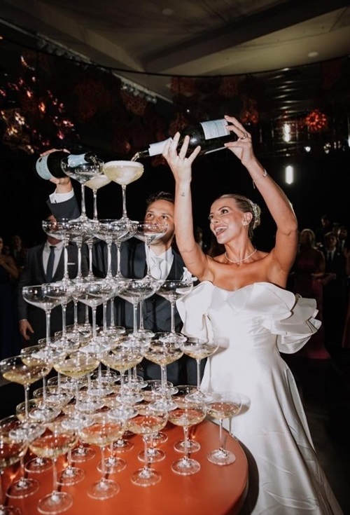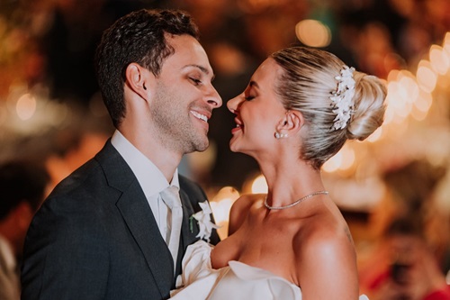 A felicidade dos noivos.