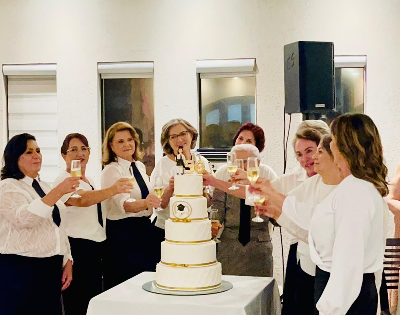 Uma noite inesquecível marcou a celebração dos 50 anos de formatura da Turma de 1974 da Escola Normal Colegial Padre José Anchieta (atual Colégio Estadual Sagrada Família em Campo Largo). O evento, realizado no elegante La Rocca Restaurante, no dia 30/11, e organizado com muito carinho por Doris Silva e Roseli Portugal, reuniu as formandas Daysi Brito, Doris Silva, Edna Lopes, Ema Bini, Marise Nerone, Dona Maria Boerton, Miriam Odpes, Rosalva do Nascimento, Roseli Portugal, Silmara Gequelin e Silvia Bassani, junto de seus familiares, para reviver memórias e celebrar uma trajetória repleta de conquistas.