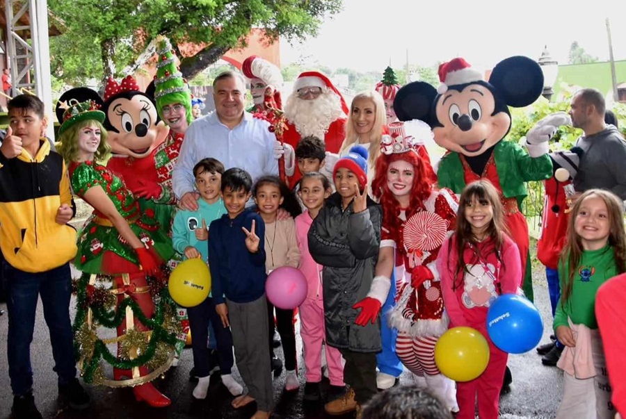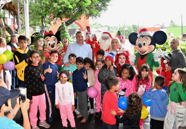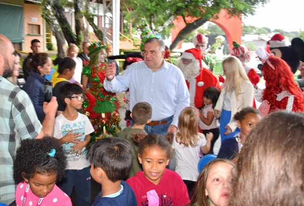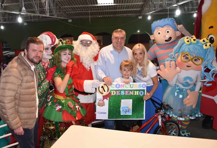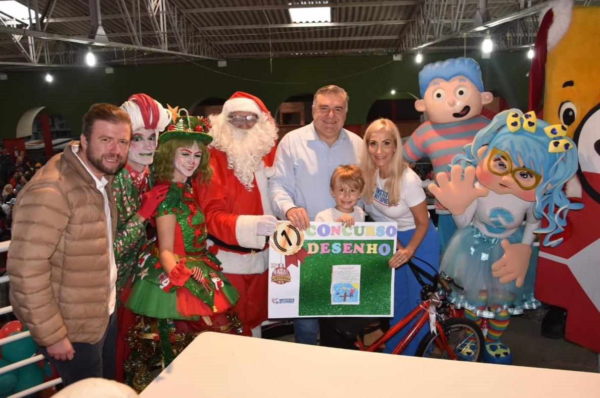O Papai Noel chegou mais cedo para cerca de milhares de crianças de Curitiba. No sábado, dia 07/12, mesmo com muita chuva, o Instituto Dr. Ney Leprevost, em parceria com empresas privadas, professores e voluntários, realizou o “28º Natal da Solidariedade”, tradicional evento natalino que incentiva a leitura, a cidadania e a criatividade por meio de concurso cultural de desenho e redação. A festa contou com distribuição de livros, brinquedos, lanches e brincadeiras pedagógicas para toda criançada. A hora mais esperada do evento foi a chegada do Papai Noel, que junto com Ney Leprevost, Alexandre Leprevost e a presidente de honra do Instituto Dr. Ney Leprevost, Carina Zanier e o vereador Sidney Toaldo, entregou bicicletas para os autores da melhor redação e do melhor desenho, além de brinquedos e livros para todas as crianças. Neste ano, o concurso de redação teve como tema “Qual o maior ensinamento de Jesus para minha vida”. A redação vencedora foi de Yesiel Orlando Peréz de La Penã, da Escola Municipal Walter Onofre e o melhor desenho foi de Vicente Tadeu Húpalo, do CEI Pedro Dalla Bona. Antes do início da distribuição dos brinquedos, as crianças receberam uma bênção cristã especial pela sua proteção do Diácono Darci. “Muito mais do que entregar brinquedos, o que queremos é semear nas crianças a semente da criatividade e da leitura,” afirmou Carina Zanier, presidente do Instituto. “Ver a alegria no rosto das crianças é uma sensação de dever cumprido. Eu me sinto muito feliz. Quero agradecer a Deus, às empresas parceiras e às professoras que orientaram seus alunos para os concursos de redação e desenho. As crianças ganharam livros e brinquedos e se divertiram bastante.
