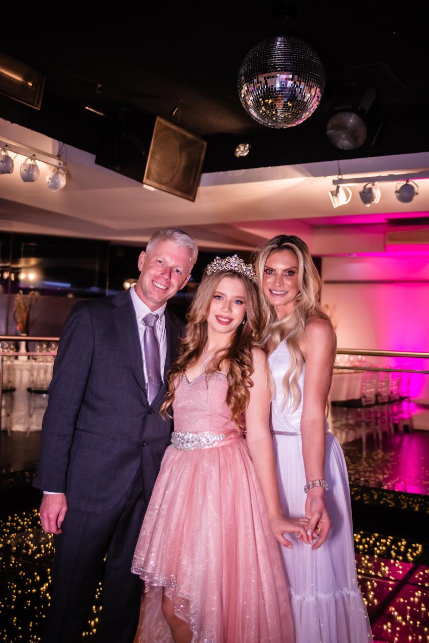 Festa maravilhosa que aconteceu no dia 12 de dezembro, no Mezza Notte Restaurante, para comemorar os 15 anos de Stephanie, filha de Erik Alexander Jenichen e Micheli Inês Belinovski Jenichen. A festa foi extremamente divertida e alto astral, tudo preparado com muito requinte, a pista de dança sempre lotada durante toda a festa. O ponto alto foi a maravilhosa valsa com o pai, avós, tios e primos e por último, com um lindo príncipe. Durante a festa, passava um vídeo com mensagens de todos os convidados, foi emocionante. A aniversariante fez um curso de doces e o bolo da festa foi confeccionado por ela, com os seus professores Gislaine Diniz e Márcio Lobo, da Magis Backery, com um sabor inusitado e extremamente delicioso. A cabine de tirar fotos instantânea e a máquina de sorvete americano agradaram a todos os convidados. A aniversariante escreveu um lindo texto e a Coluna Charme publica: