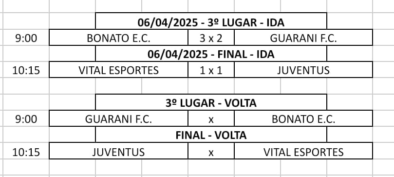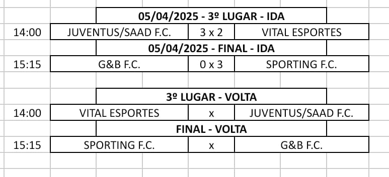 Os jogos de volta das finais, nas duas categorias, 50tões e 40tões, acontecem com dois jogos na tarde de sábado (12/04) e dois jogos na manhã de domingo (13/04), respectivamente, em grandes decisões e definição dos campeões.