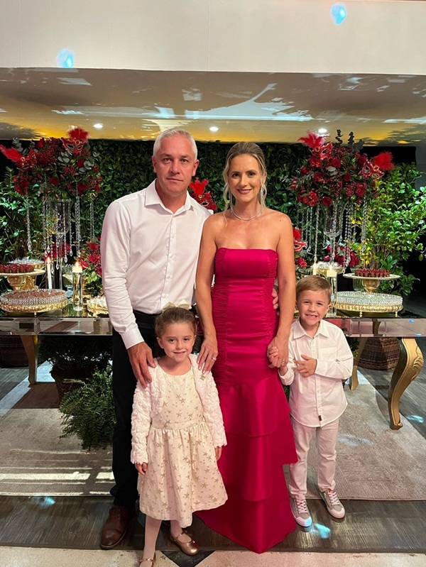 Os padrinhos José, Sinara e os filhos Victória e Vicente.