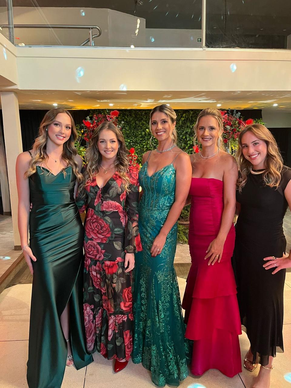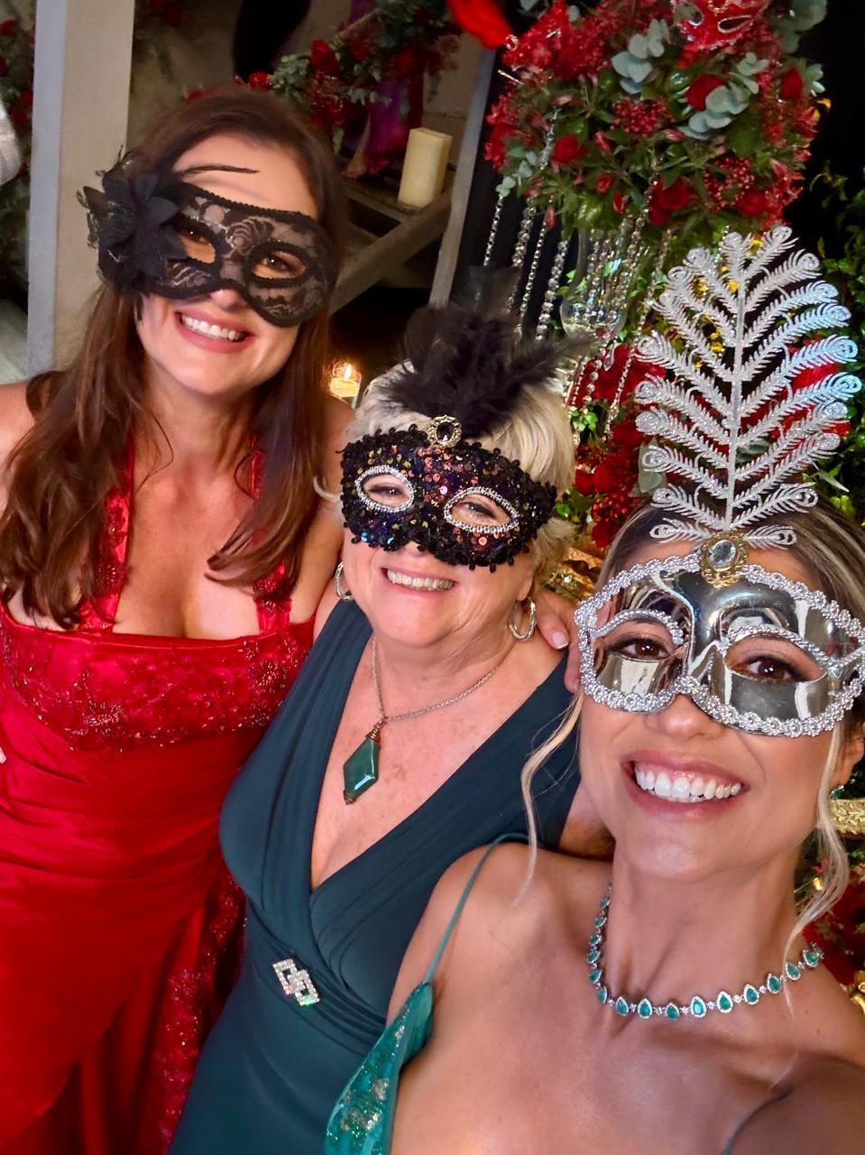 A mãe da aniversariante ao centro e as primas e