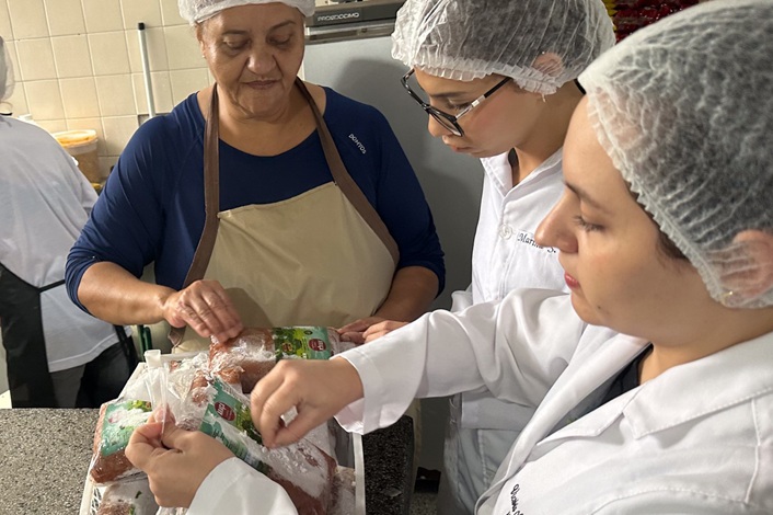 O suco foi preparado pelas merendeiras da escola, com apoio da equipe de nutricionistas do Fundepar. Rosicléia Aparecida Lemos, que trabalha há 19 anos na cozinha do colégio, explica que é preciso “jogo de cintura” para entender os gostos e hábitos dos estudantes, principalmente quando o alimento é novidade.