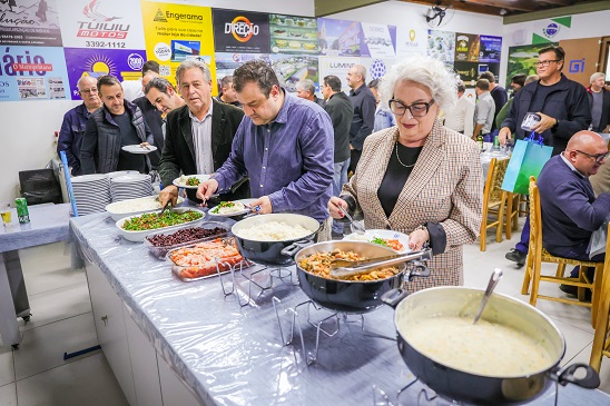 O presidente Sandro destacou o jantar, que desta vez, teve como atrativo o FRANGO DESOSSADO e RECHEADO oferecido por Pedro Oliveira. É algo diferente para oferecer nos eventos. “Ele faz como hobby para os amigos, mas me disse que se for meu amigo, ele faz com prazer”, frisou o presidente. O jantar teve um acompanhamento o ENTREVERO DE PINHÃO elaborado pela equipe da secretária Cristina. Assim, com mais um encontro super agradável e uma rodada de sorteio de brindes, oferecidos pela Quimicons Engenharia, pelo Empório Bella Vita e pela Central da Propaganda/MINHA RÁDIO, o presidente agradece a participação de todos e os convoca para dia 10/06, com nova reunião e confraternização.