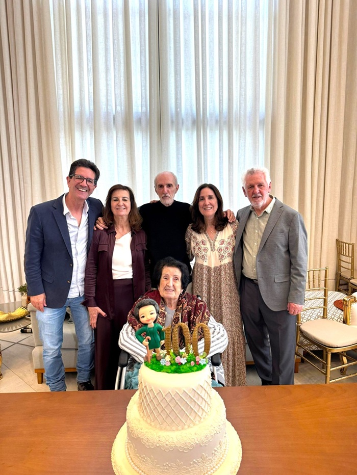 Aconteceu, no dia 04 de junho, uma linda festa preparada com muito carinho pelos filhos de Lúcia Goes Chemin. Eles tiveram o privilégio de comemorar os 100 anos da adorável matriarca. Agradeceram a Deus a dádiva concedida a eles, aos amigos que privaram de sua convivência serena e alegre. O seu maior legado: a fé inabalável e sabedoria na caminhada que lhe trouxeram uma alegria de viver e o slogan sempre presente em seus lábios.