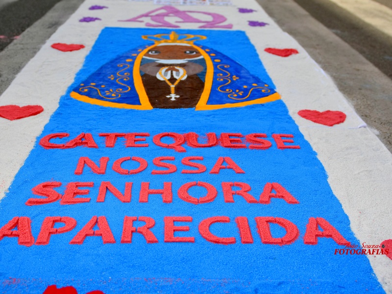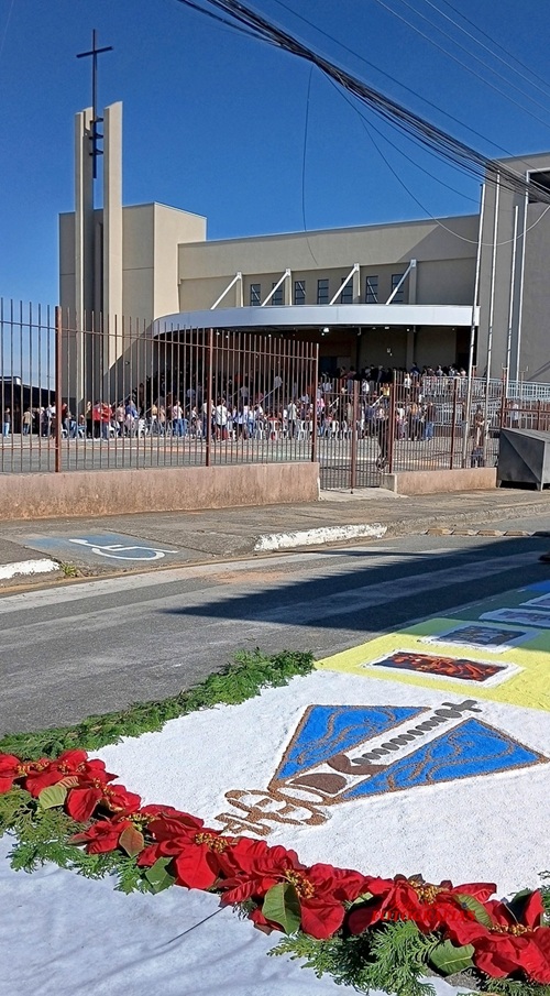 Desde a madrugada, grupos de fiéis trabalharam lado a lado na confecção dos tapetes, criando verdadeiros mosaicos de fé que retrataram símbolos religiosos, passagens bíblicas e mensagens de esperança. A produção, artesanal e colaborativa, foi considerada por muitos como um dos momentos mais tocantes da celebração.