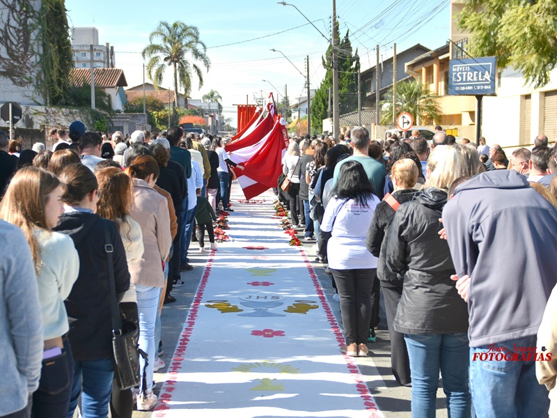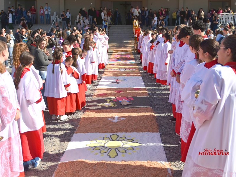 Destaques no evento foram os tradicionais tapetes de Corpus Christi, que mais uma vez encantaram moradores e visitantes. Feitos com serragem colorida, areia, pó de café, flores, papel e tecidos, os desenhos espalhados pelas ruas não apenas embelezaram o percurso da procissão, mas também expressaram a fé e a criatividade dos voluntários.