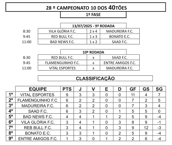 As rodadas do 19º Campeonato 50tões e do 28º Campeonato 40tões estão marcadas para o final de semana, 19/07 e 20/07, respectivamente, conforme tabela divulgada.