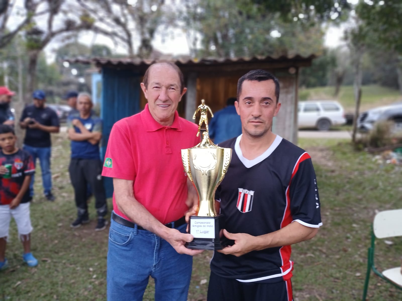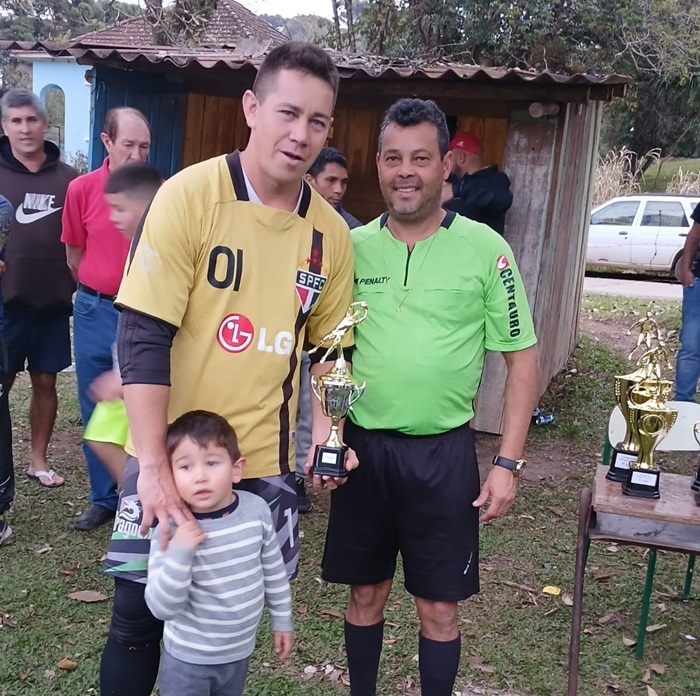 O capitão Jeca do Vila Glória recebendo o troféu de